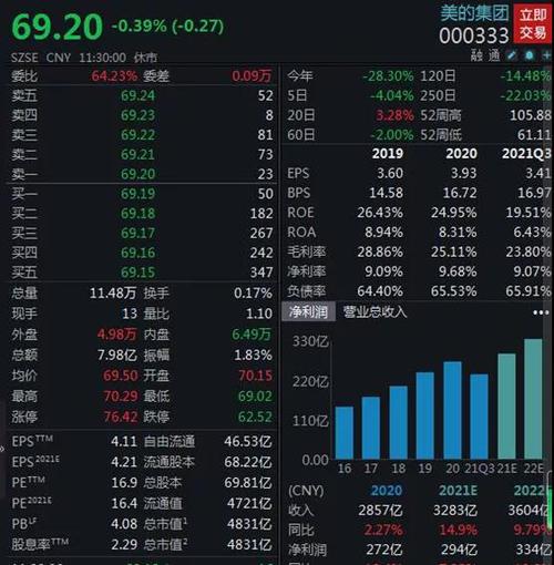 中新经纬11月24日电 (张猛)24日,美的集团高开0.98%,随后股价下跌。截至午间收盘,美的集团跌0.39%报69.2元/股,总市值4831亿元。