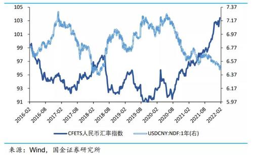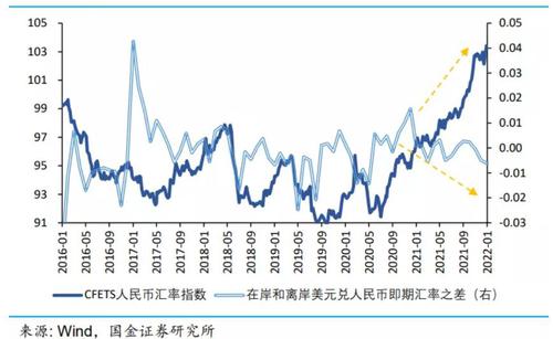 自“8·11汇改”以来,人民币兑美元汇率与美元指数走势吻合度非常高。但2021年四季度以来有所不同,美元指数升值的背景下,人民币兑美元汇率持续走强。