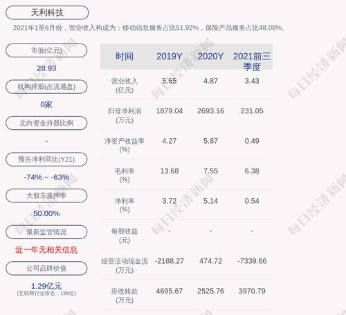 2021年1至6月份,天利科技的营业收入构成为:移动信息服务占比51.92%,保险产品服务占比48.08%。