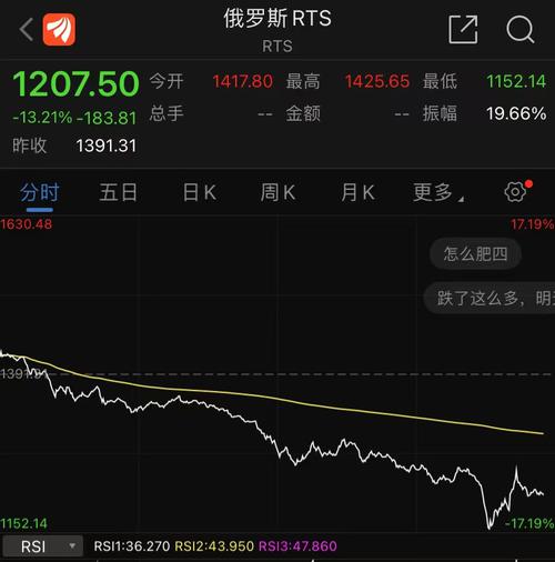 由于俄乌局势持续紧张,俄罗斯交易系统指数(RTS)持续走低,跌幅一度扩大至17%。