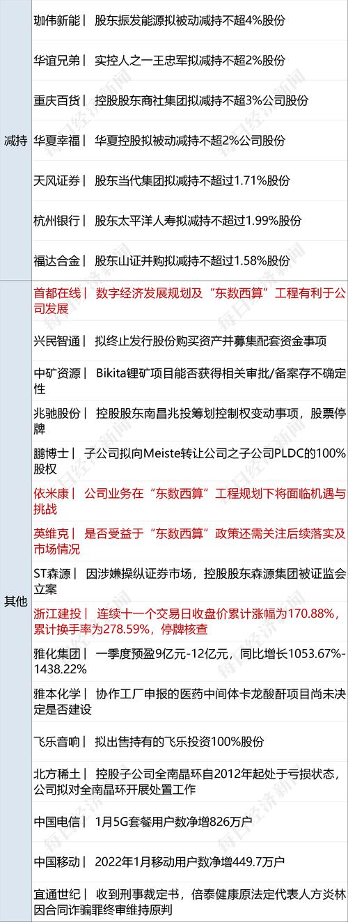 NO.8 新东方:公开信息显示,2月17日,广州汇智未来数字科技有限公司成立,注册资本100万元人民币,经营范围包含:数字文化创意内容应用服务;面向家长实施的家庭教育咨询服务等。企查查股权穿透显示,该公司由北京布局未来教育科技有限公司100%控股,后者为新东方教育科技集团有限公司全资子公司。(证券时报)