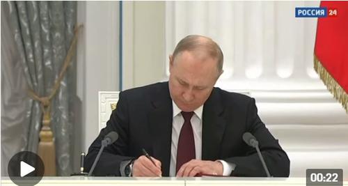 据央视新闻2月22日凌晨消息,当地时间21日,俄罗斯总统普京发表全国视频讲话,宣布承认乌东民间武装自称的顿涅茨克人民共和国和卢甘斯克人民共和国为独立国家,随后签署承认顿涅茨克人民共和国和卢甘斯克人民共和国的总统令,并签署俄罗斯与顿涅茨克人民共和国和卢甘斯克人民共和国的友好合作互助条约。