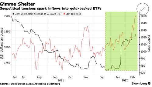 黄金价格在过去几个小时出现反弹势头,暗示一些地缘事件进展仍有较高不确定性,现货黄金一度升破至1908美元的八个半月最高。地缘政治紧张局势也引发黄金相关的ETF净流入。