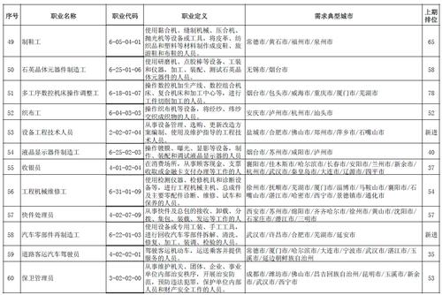 按照《中华人民共和国职业分类大典(2015版)》分类标准,100个职业中,43个属于第六大类——生产制造及有关人员,37个属于第四大类——社会生产服务和生活服务人员,15个属于第二大类——专业技术人员,3个属于第三大类——办事人员和有关人员,1个属于第一大类——党的机关、国家机关、群众团体和社会组织、企事业单位负责人,1个属于第八大类——不便分类的其他从业人员。