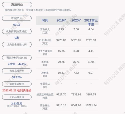 2. 海辰药业在近3个交易日上涨46.78%,所属医药生物板块同期上涨0.16%,创业板指同期下跌2.6%。