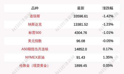 每经AI快讯:北京时间2月23日05:00,道琼斯收盘下跌482.57点,跌幅为1.42%,报33596.61点;纳斯达克收盘下跌166.55点,跌幅为1.23%,报13381.52点;标普500收盘下跌44.11点,跌幅为1.01%,报4304.76点;富时中国A50指数期货上涨25.0点,涨幅为0.17%,报14852.0点;NYMEX原油收盘上涨1.22点,涨幅为1.35%,报91.43点;美元指数收盘下跌0.05点,跌幅为0.05%,报96.08点;伦敦金(现货黄金)收盘上涨1.02点,涨幅为0.05%,报1899.45点。