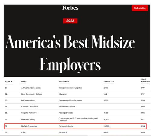 福布斯官网显示,如新集团曾先后登上《福布斯2021年度全球最佳女性友好企业榜单》《福布斯2022年全美最佳中型雇主榜单》,截至2022年2月10日,如新集团员工数达2.6万人。