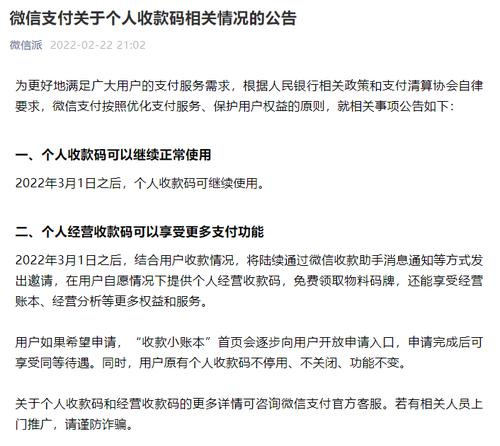 一是2022年3月1日之后,个人收款码可继续使用。