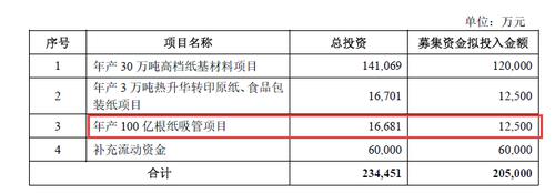 2021年12月,仙鹤股份发布了公开发行可转换公司债券上市公告书。募集项目显示,公司将投入1.25亿元募集资金,用于建设年产100亿根纸吸管项目,该项目总投资额为1.67亿元。