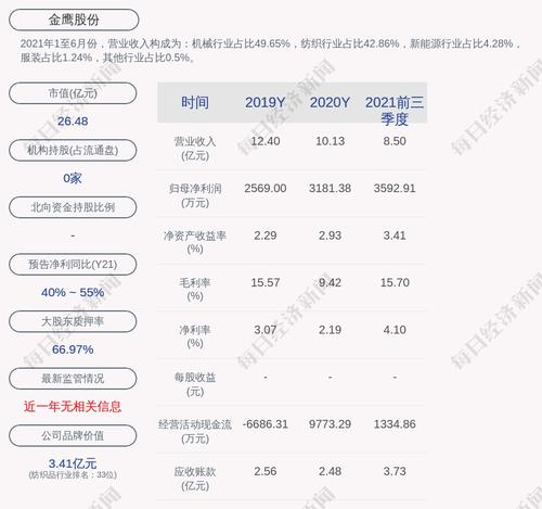 2. 金鹰股份在近3个交易日上涨19.6%,所属纺织服装板块同期上涨1.69%,上证指数同期下跌0.05%。