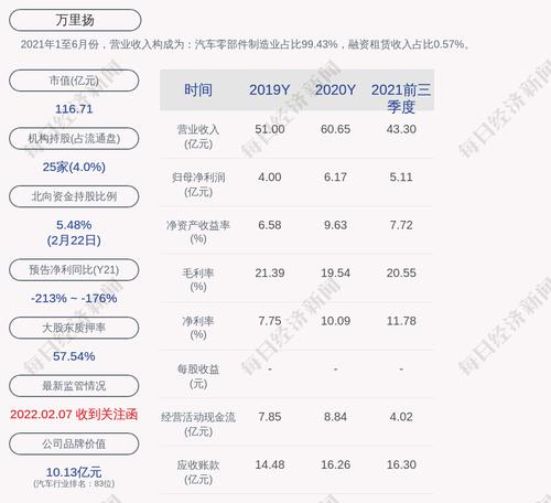 2021年1至6月份,万里扬的营业收入构成为:汽车零部件制造业占比99.43%,融资租赁收入占比0.57%。
