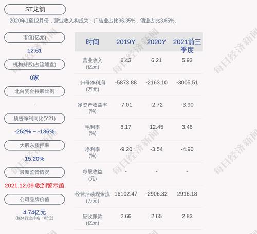 2020年1至12月份,ST龙韵的营业收入构成为:广告业占比96.35%,酒业占比3.65%。