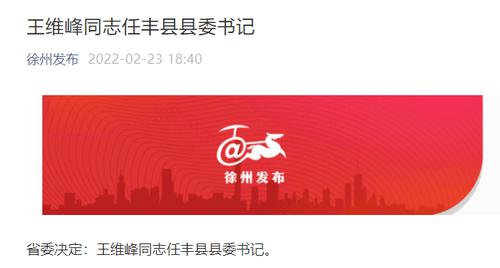 每经AI快讯,据微信公众号“徐州发布”报道,江苏省委决定:王维峰同志任丰县县委书记。