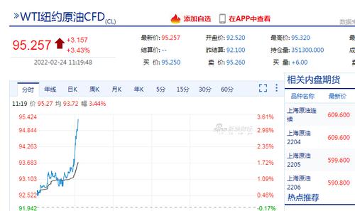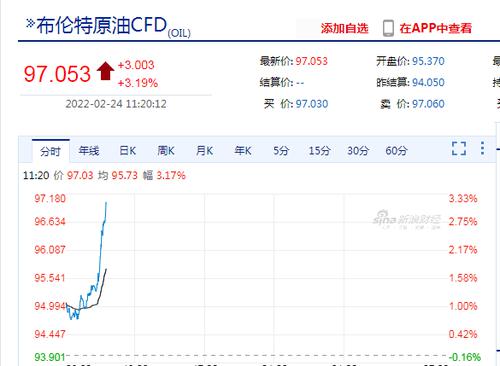 2月24日,国际原油大涨,WTI纽约原油涨幅达3.43%,报95.257美元/桶;布伦特原油涨幅达3.19%,报97.053美元/桶,布伦特原油4月合约触及100美元/桶关口,刷新2014年9月以来新高。