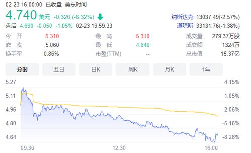 当日美股盘前,FF股价涨8.5%,开盘后则高开低走。截至美股收盘,FF报收4.74美元/股,跌幅6.32%,总市值15.37亿美元,较上市之初的约45亿美元市值已蒸发了超60%。