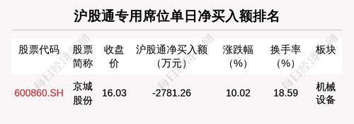 在龙虎榜中,涉及沪股通专用席位的个股有1只,京城股份的沪股通专用席位净卖出额最大,净卖出2781.26万元。