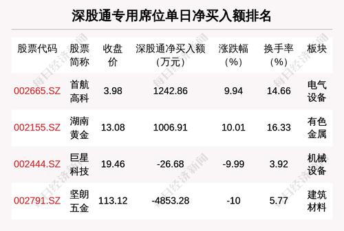在龙虎榜中,涉及深股通专用席位的个股有4只,首航高科的深股通专用席位净买入额最大,净买入1242.86万元。
