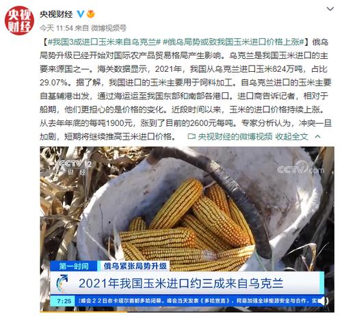 央视财经援引专家分析认为,冲突一旦加剧,短期将继续推高玉米进口价格。
