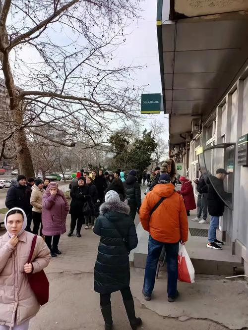 乌克兰敖德萨居民排队取钱。图片来源:敖德萨当地人拍摄