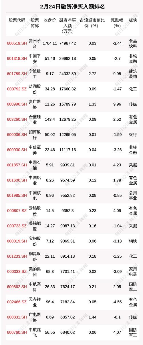 从融资资金净买入金额来看,共有8只个股净买入金额超亿元,其中贵州茅台、中国平安、宁波建工排名前三,买入金额分别为7.5亿元、3亿元、2.43亿元。