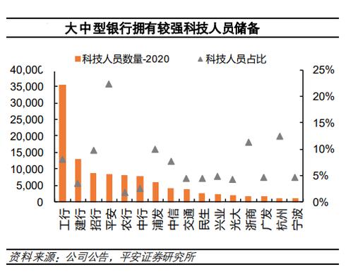 平安证券研究报告提及,从大中型银行的实践来看,为了压缩获客成本,从信贷工厂的半自动化,到线上模式的全自动化,再到供应链模式的智能化,科技与服务不断创新结合应用始终贯穿其中。从行业金融科技发展水平来看,银行业对大数据、云计算、人工智能等技术的应用十分广泛,整体数字化程度较高,离柜率超过 90%,同时各家银行大力进行科技投入,2020年末银行业科技人员占比接近 10%。
