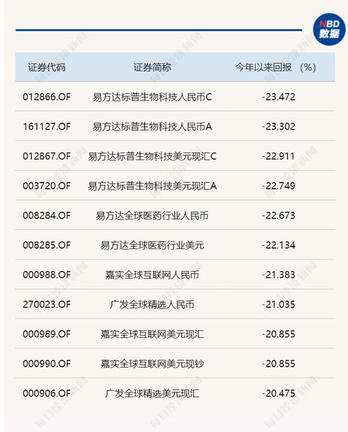 统计显示,截至2月24日,在前述统计的384只产品中,已有11只年内净值累计跌幅超过20%,易方达标普生物科技人民币C跌超23.47%;嘉实全球互联网人民币同期跌幅超21.38%,去年下半年累计净值涨幅6.28%。