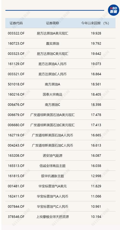 Wind统计显示,截至北京时间2月24日,易方达原油A美元现汇今年以来最新净值增长率已达19.93%,2月以来涨幅近6.50%;嘉实原油同期净值增长率分别为19.79%和5.95%。另有19只产品今年以来最新净值增长率超过10%,其中包括国泰大宗商品、诺安油气能源、上投摩根全球天然资源等。