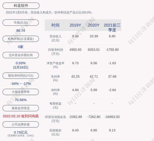1. 科蓝软件近30日内北向资金持股量增加22.70万股,占流通股比例增加0.04%;