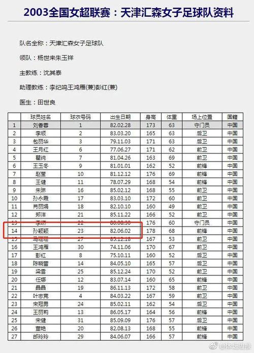 孙颖颖为前天津汇森女足队员