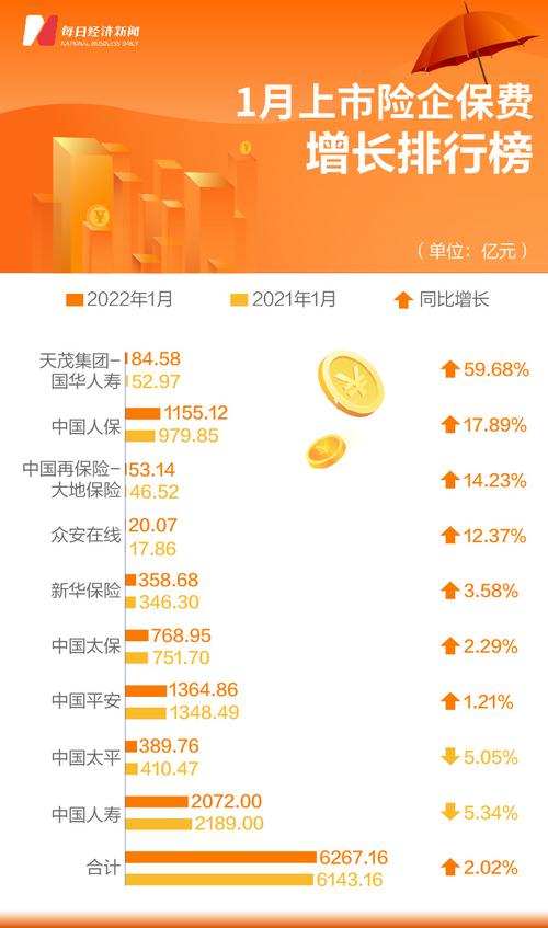 从具体公司看,2022年1月,国华人寿实现保费84.58亿元,同比大增59.68%,排名总榜第一;中国人保实现保费1155.12亿元,同比增长17.89%,保费增速排名第二;另外,大地保险、众安在线两家1月保费也录得两位数增长。