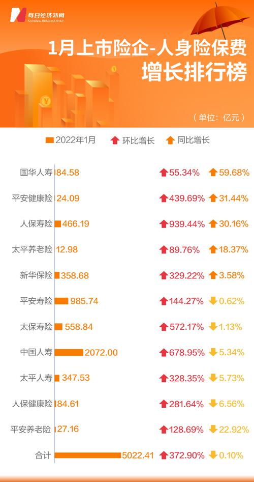 从具体公司来看,人保寿险、中国人寿、太保寿险1月保费较上年12月分别大增超过9倍、6倍、5倍,此外,平安健康险、新华保险、太平人寿保费环比增长超过3倍。