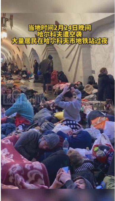 据央视军事微博2月25日晚间消息,当地时间2月24日晚间,哈尔科夫遭空袭。大量居民选择在哈尔科夫市各个地铁站过夜。