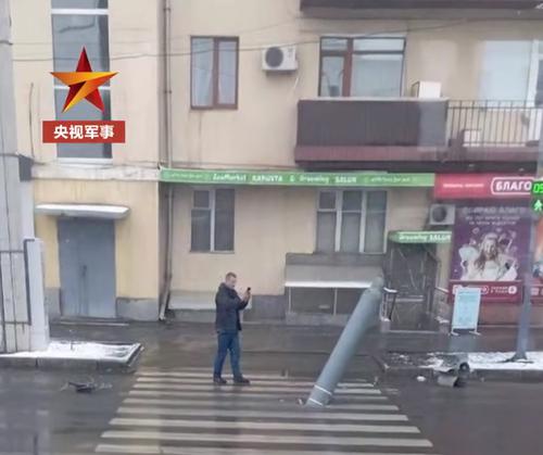 有网传图片显示,疑似一枚导弹落入乌克兰哈尔科夫市区,当地民众淡定凑近拍照。