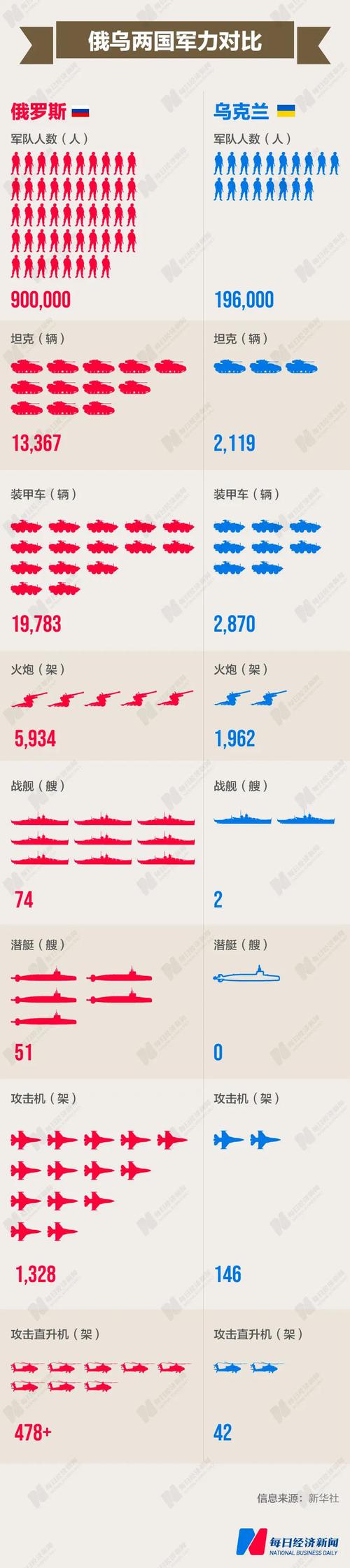 据央视新闻北京时间2月26日凌晨报道,俄罗斯国防部发布消息称,俄武装力量自行动开始以来共使211个乌克兰军事基础设施瘫痪。俄乌两国的军力差距有多大?