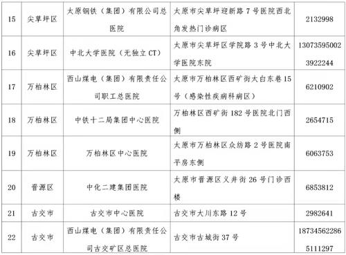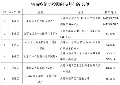 据山西发布微信公众号26日消息,太原市卫健委公布省城疫情防控期间25家发热门诊名单。