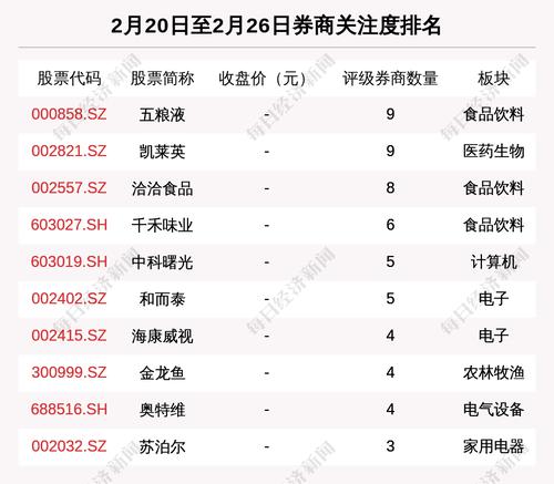 从券商对个股的关注程度来看,有50只个股获得多家券商关注,券商关注数量排名居前的个股是五粮液(000858.SZ)、凯莱英(002821.SZ)、洽洽食品(002557.SZ)。