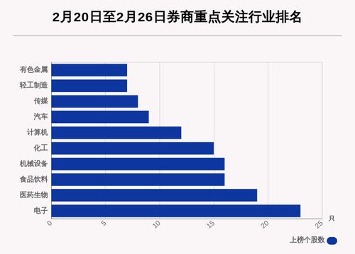 从券商对行业的关注度来看,券商关注个股数居前的行业分别是电子、医药生物、食品饮料。