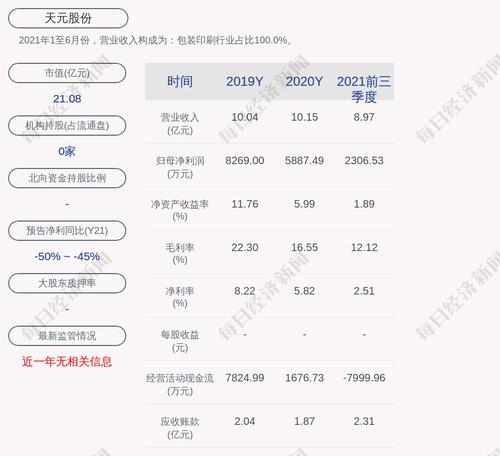 2021年1至6月份,天元股份的营业收入构成为:包装印刷行业占比100.0%。