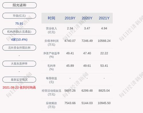 每经AI快讯,阳光诺和(SH 688621,收盘价:94.89元)2月27日晚间发布年度业绩报告称,2021年营业收入约4.94亿元,同比增加42.12%;归属于上市公司股东的净利润盈利约1.06亿元,同比增加45.81%;基本每股收益盈利1.51元,同比增加24.79%。