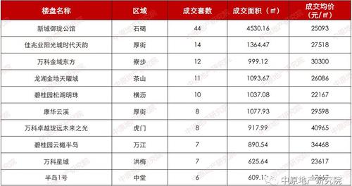 2月第3周(2月14-20日)东莞洋房成交TOP10 数据来源:中原地产
