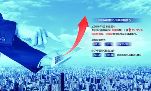 有分析认为,近年来,国内证券市场投资者规模增速明显提升,反映了居民财富入市速度加快的大趋势。不过据统计,在这6年间,A股核心指数中的上证指数、深成指等涨幅落后于投资者规模的增幅,其中上证指数仅上涨了16%。与此同时,沪深两市的总市值规模膨胀了近100%。