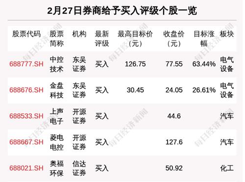 2丨整点投资 | 2月27日34只个股获券商关注,中控技术目标涨幅达63.44%