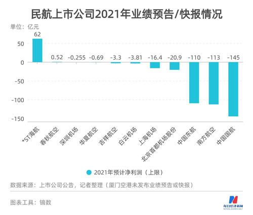 自2021年初开始,《每日经济新闻》每月推出《中国民航业数据洞察报告》及“民航数据洞察”系列报道。据《每日经济新闻》记者统计,目前已披露业绩预告的11家民航业上市公司中,有9家预亏。其中,中国国航的亏损额度预计将比2020年还多,最高或将亏损170亿元。