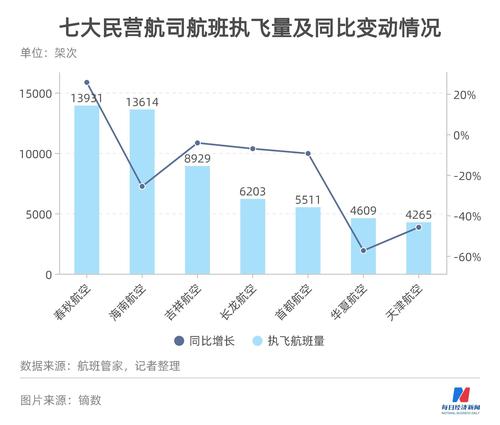 另一方面,1月份,尽管民航业在春运刺激下有所回暖,但与去年同期相比仍有一些差距。据航班管家数据,七大民营航司中,只有春秋航空的执飞航班量同比有所上升,华夏航空的执飞航班量同比减少幅度达到57.36%。