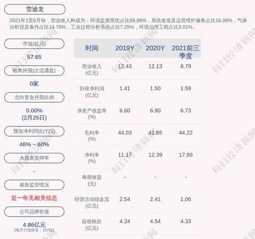 2021年1至6月份,雪迪龙的营业收入构成为:环境监测系统占比58.88%,系统改造及运营维护服务占比16.08%,气体分析仪及备件占比14.78%,工业过程分析系统占比7.25%,环境治理工程占比3.01%。