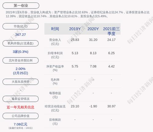 2021年1至6月份,第一创业的营业收入构成为:资产管理业务占比32.63%,证券经纪业务占比24.7%,证券投资业务占比12.39%,固定收益占比10.74%,其他业务占比10.61%,直投业务占比5.49%。