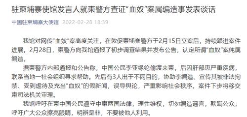 1丨中国驻柬埔寨使馆发言人就柬警方查证“血奴”案属编造事发表谈话