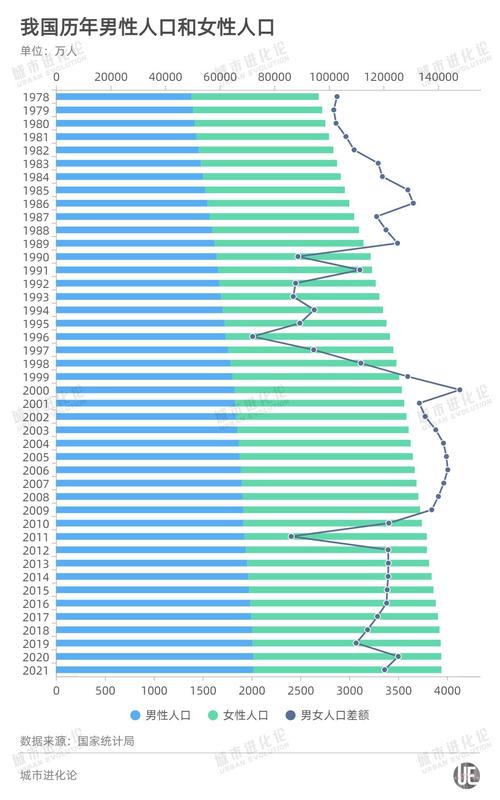 从性别构成看,男性人口72311万人,女性人口68949万人,男性比女性多3362万人。中国统计年鉴显示,2020年男性人口为72357万人,女性人口为68855万人,这意味着2021年男性人口下降46万人,女性人口则有94万的增长。这也是我国男性人口40多年来首次下降。