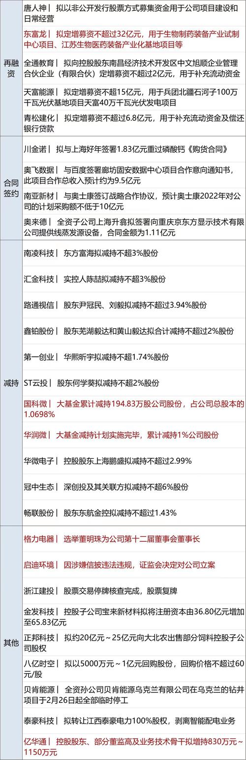 NO.1 格力电器:2月28日下午,公司召开临时股东大会,现年68岁的董明珠再次获任,也意味着她将在格力电器继续执掌3年。董明珠在股东大会上透露,未来格力电器也有分拆上市旗下板块的计划,比如装备等板块。此外,对于外界议论较多的手机业务,董明珠表示,“我还是要坚持做手机,相信坚持有收获”。(每日经济新闻)