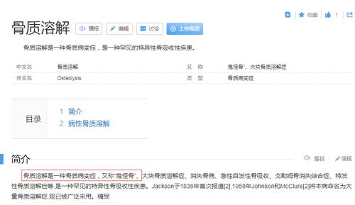 公开资料显示,骨质溶解是一种骨质病变症,又称“鬼怪骨”、大块骨质溶解症、消失骨病、急性自发性骨吸收、戈勒姆骨消失综合症、特发性骨质溶解症等,是一种罕见的特异性骨吸收性疾患。
